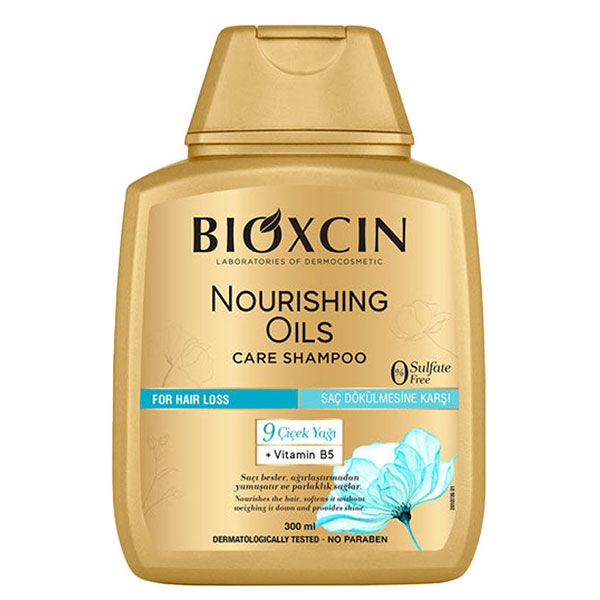 شامپو ضد ریزش حاوی 9 روغن مغذی بیوکسین Bioxcin Nourishing Oils Shampoo 9 Flower Oil 300Ml